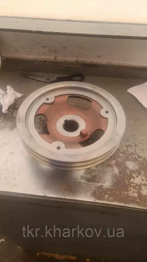 Шків колінвала для трактора Т-40. Унікальне маркування Д37Е-1308157-А2. Встановлюється на колінчастий вал трактора Т-40, для передавання обертання для подальшого перетворення на електрику за допомогою генератора.
