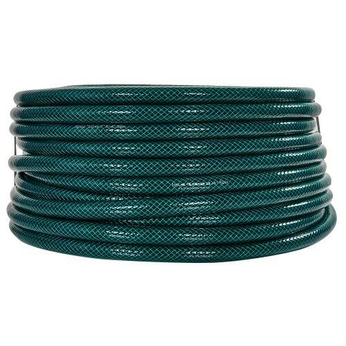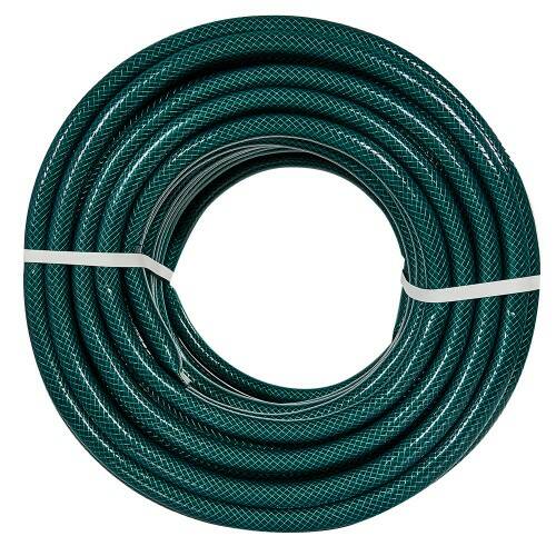 3. **Трислойова конструкція**: Шланг має внутрішній, середній та зовнішній шари. Внутрішній шар є гладкою трубкою з ПВХ, що забезпечує вільний протік води. Середній шар армований хрестоподібними нитками, що надає шлангу міцності та стійкості до тиску. Зовнішній шар є захисною оболонкою, яка захищає шланг від механічних пошкоджень та впливу навколишнього середовища.