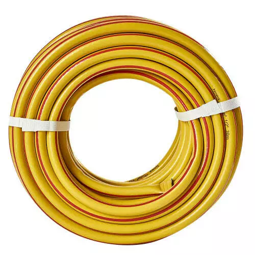 3. **Трислойова конструкція**: Шланг має внутрішній, середній та зовнішній шари. Внутрішній шар є гладкою трубкою з ПВХ, яка забезпечує вільний потік води. Середній шар армований хрестоподібними нитками, що надає шлангу міцності та стійкості до тиску. Зовнішній шар є захисною оболонкою, яка захищає шланг від механічних пошкоджень та впливу навколишнього середовища.