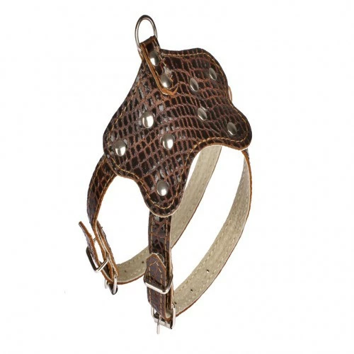 Рептилія: Шлейка подвійна для декоративних порід № 3. Матеріал - шкіра декор; шкіра спилок (Тиснена шкіра нагадує шкіру рептилій).