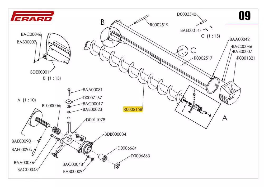 Шнек горизонтальний перевантажувача зерна Perard Trans-eXpress 500
