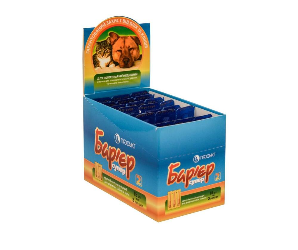 Шоу-бокс Краплі Бар'єр супер для собак і котів 15 блістерів по 3 ампули * 1 мл (термін до 07.2026 р)