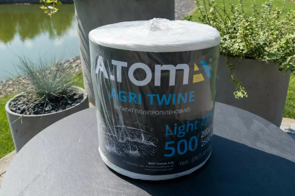 Шпагат поліпропіленовий A.TOM 500 – це новий продукт на ринку України, який, з першого ж року отримав багато гарних відгуків від вдячних клієнтів. Шпагат виготовлено з якісного первинного поліпропілену з додаванням захисту від УФ-променів.