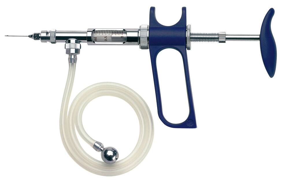 Дана модель комплектується гнучким шлангом для забезпечення постійної подачі медичних препаратів в циліндр ін'єктора. Шприци Socorex з автонаповнювачем циліндра, підпружиненим поршнем і двостороннім клапаном рекомендуються ветеринарними фахівцями різних галузей для масової вакцинації або проведення лікувального ін'єктування поголів'я птахів, свиней, великої рогатої худоби, дрібної рогатої худоби, риби, а також дрібних лабораторних тварин. Всі деталі ін'єктора можуть бути простерилізовані в кип'ятильнику або в повній комплектації поміщені в автоклав на 20 хв при максимальній температурі 121 ºC.