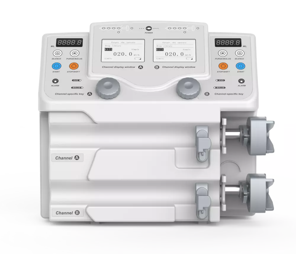 Двоканальний шприцевий насос BYZ-810T забезпечує можливість введення препаратів за 3 режимами: простий режим, режим об’єм/час, режим об’єм/маса.