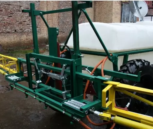 Описание Предназначена для переоборудования оприскивателей производства «Львовсельмаш» • Предназначена для поддержки элементов подачи и внесения рабочей жидкости. • Изготовлена в виде плоской фермы длинной 18 метров. • Состоит из 5 несущих секций: центральной, двух промежуточных и двух крайних, шарнирно соединенных между собой с помощью осей. • Регулировка рабочей высоты штанги от 0,5 до 1,7 метра осуществляется из кабины трактора с помощью гидравлической системы трактора. • Раскладывания штанги в рабочее положение и складывание в транспортное осуществляется из кабины трактора с помощью гидравлической системы. • Оборудована маятниковым механизмом стабилизации в вертикальной плоскости и гидромеханической системой гашения колебаний в горизонтальной плоскости, которые удерживают штангу параллельно плоскости поля и увеличивают стойкость к негативному влиянию динамических нагрузок. Механизм надежно работает при скорости агрегата до 10 км/год. • Резиновые демпфера уменьшают влияние критических нагрузок. • Для предотвращения столкновений штанги с неровностями почвы на промежуточных секциях установлены опорные лыжи. • Пружинный механизм предотвращения повреждений штанги при столкновении с препятствием дает возможность отклонения крайних секций в горизонтальной плоскости.