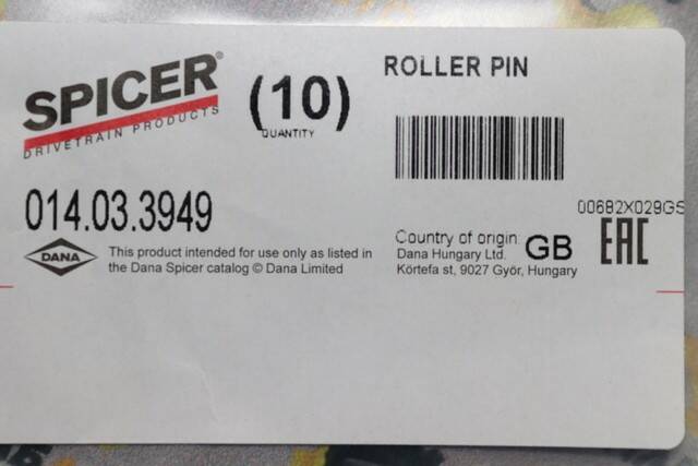 3. Гарантія виробника – на всі запчастини DANA SPICER поширюється офіційна гарантія, що забезпечує захист від підробок.