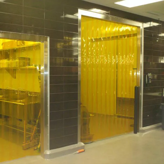 Пластикові штори або термоштори представляють собою завісу з декількох рядів ПВХ плівки, яка накладається одна на іншу. Ступінь перехльоста смуг залежить від інтенсивності умов використання та призначення отвору, а також, від площі.