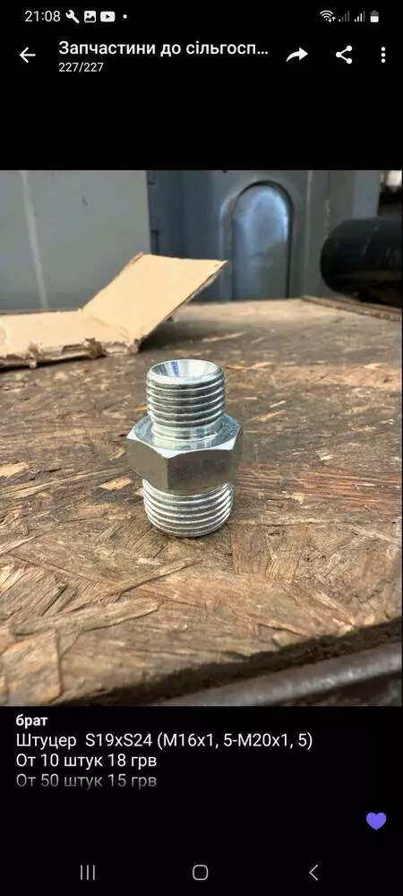 Штуцер S19хS24 (М16х1, 5-М20х1, 5)