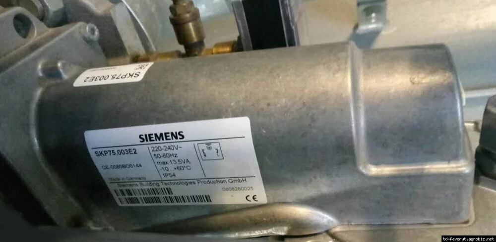 Электропривод для газового клапана Siemens Landis Gyr SKP75.003E2 осуществляет функцию предохранительной отсечки газа, работает совместно с газовыми клапанами Siemens. Конструкция сервопривода Siemens SKP75.003E2 предусматривает замедленное открытие, быстрое закрытие газового клапана, низкую потребляемую мощность. Электропривод SKP 75.003E2 способен контролировать величину перепада давления газа в газопроводе в зависимости от перепада давления в канале подачи воздуха.