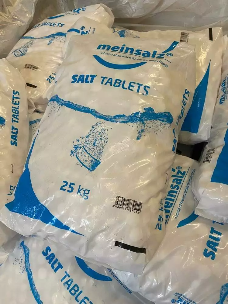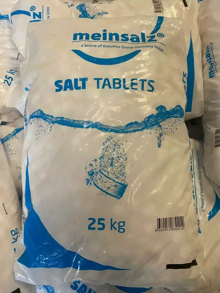 Таблетована сіль Meinsalz , без йоду та антизалежувальних добавок, призначена для систем очистки та пом'якшення води, відрізняється високою ефективністю використання.Meinsalz – це високоякісна сіль, яка має високий вміст хлориду натрію – 99%. Постійний контроль якості гарантує високу чистоту цього продукту. Сіль для пом'якшення води має відмінні експлуатаційні характеристики та відповідає європейському промисловому стандарту ISO 9001.