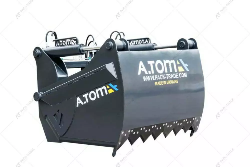 Силосний різак - А.ТОМ 1,6 м³ — це універсальне та надійне навісне обладнання, призначене для зрізу корму, сіна, сухої та вологої соломи. Оснащений сталевими гартованими лезами підвищеної твердості, які розташовуються зверху та з обох боків. Робочий хід (функціонування верхнього різака) забезпечується гідравлікою — двома гідроциліндрами, потужності яких вистачає для точного зрізання найщільнішої структури силосу. Завдяки цьому досягається рівний зріз, що допомагає запобігти потраплянню в силос теплого повітря з одночасним збереженням його поживної цінності. Обладнання може також використовуватися для розрізання продукції у плівці, що є зручним під час подавання корму безпосередньо в приміщенні, а також для навантаження кормозмішувачів. Закрита конструкція ковша дозволяє мінімізувати втрати вантажу при переміщенні, а значний об’єм дозволяє економити час та витрати на паливо, підвищуючи рентабельність робіт.