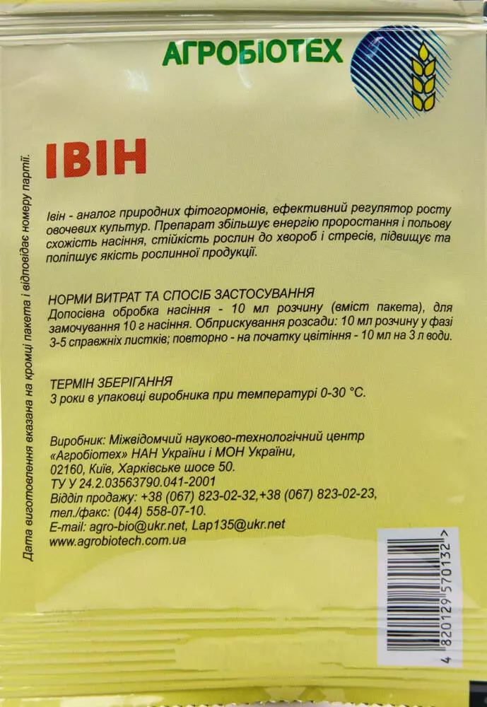 Івін - ефективний регулятор росту овочевих культур, аналог природних фітогормонів.