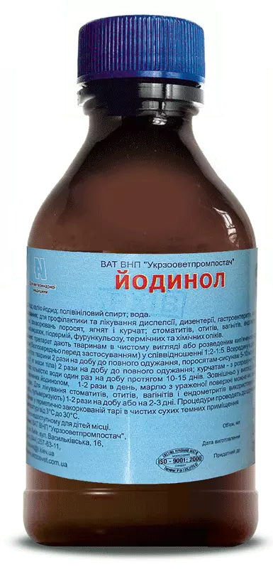 При шлунково-кишкових захворюваннях препарат вводять всередину. Препарат дають тваринам в чистому вигляді або розведеним кип'яченою водою або фізіологічним розчином (безпосередньо перед застосуванням) в співвідношенні 1:2-1:5. Телятам йодинол дають щодня до повного одужання 2 рази на добу в дозі 1-1,5 мл на 1 кг маси тіла тварини; поросятам-сосунам - у дозі 5-10 мл на одного поросяти або з розрахунку 2 мл на 1 кг маси тіла) 2 рази на добу до одужання; курчатам - з розрахунку 0,2-0 ,3 мл на голову з невеликою кількістю води один раз на добу протягом 10-15 днів. При шкірних захворюваннях застосовують зовнішньо у вигляді промивань, при необхідності накладають пов'язку у вигляді примочок з марлі, змоченою йодинол. Перев'язки роблять 1-2 рази в день, марлю з ураженої поверхні можна не знімати, а знову просочити йодинол. Для лікування стоматитів, отитів, вагінітів і ендометритів використовують місцево (промивають, закопують, пульверизируют) 1-2 рази на добу або на 2-3 дні. Процедури проводять до одужання.