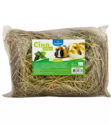 Сіно лугове «М’ята» - для кроликів, шиншилок, морських свинок, хом’ячків та інших гризунів. Сіно необхідне для всіх гризунів, щоб забезпечити правильне травлення та постійне сточування зубів. Сіно «М’ята» має привабливий запах, що пробуджує апетит улюбленців. М’ята має цілющі властивості, вона має заспокійливу, протиревматичену та протиалергічну дію. Це сіно рекомендовано застосовувати як вітамінний додаток до раціону. Також сіно є чудовою екологічною підстилкою.
