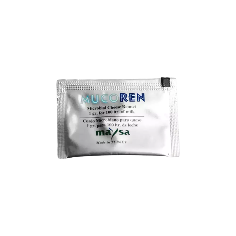 Мікробіальний ренін MUCOREN 2000 є ферментом для згортання молока та подальшого виробництва сирів різних сортів. Мукорпепсин (грибна закваска) виходить із грибів Mucor pusilus та Mucor miehei. Застосовується в харчовій промисловості як замінник сичужних ферментів тваринного походження. За амінокислотним складом мікробіальний ренін порівняний із сичужним яловичим пепсином (у народі багато хто так і називають його - "сичужний пепсин" або "сичуг"), який виділяють із слизової оболонки шлунка (сичуга) молодих жуйних тварин (телят, ягнят). У свою чергу мікробіальний ренін "Супер Майа" не містить у своєму складі ферментів тваринного походження. Зважаючи на те, що грибна сирна закваска MUCOREN 2000 виробляється за допомогою ферментації чистої культури харчового гриба Rhizomucor Miehei та молокозгортального ферменту Mucorpepsin, який у свою чергу теж виходить з грибів, в результаті кінцевий продукт (мікробіальний пепсин) на відміну від сичужного, є. не містить генно-модифікованих організмів (ГМО); є продуктом винятково рослинного походження; може використовуватися для приготування сирів з овечого, козячого, буйволінного та коров'ячого молока. Одного пакетика вистачає ферментацію близько 100 літрів молока. Фасування: фольгований стик (пакетик). Вага нетто: 1г.