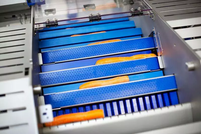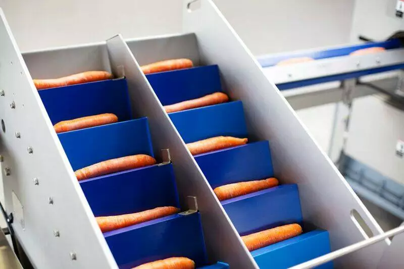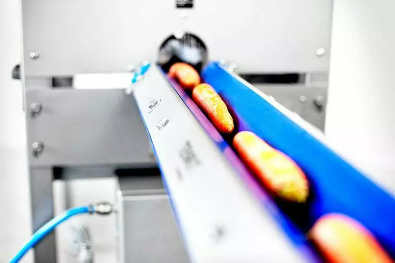 Система очистки моркви поєднує в собі автоматизовану подачу з очищенням від шкірки за допомогою ножів та нарізанням продукту із загальною продуктивністю до 4000 штук на годину.