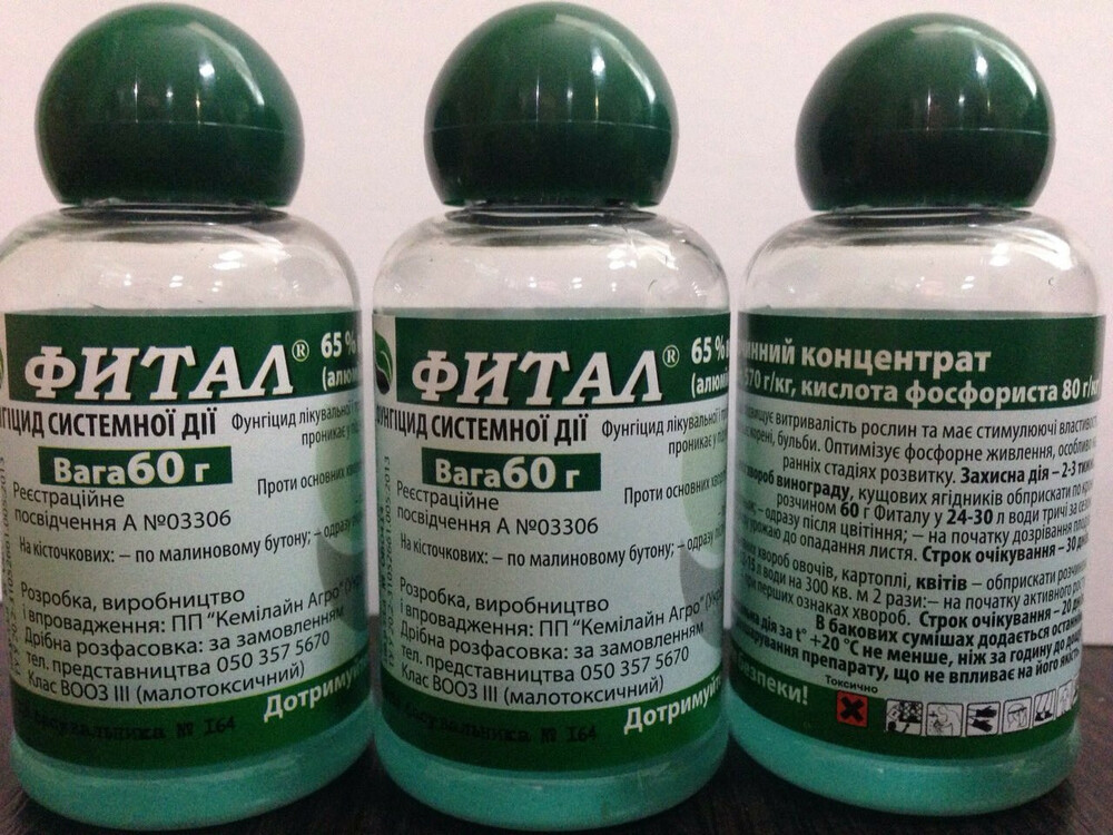 Системний фунгіцид Фітал — сильнодійний препарат, призначений для захисту рослин від найнебезпечніших і найпоширеніших захворювань. Активні речовини — фосфат алюмінію, фосфориста кислота. Фунгіцид  проникає в рослину впродовж пів години після оброблення та блокує розвиток збудників грибкових хвороб.