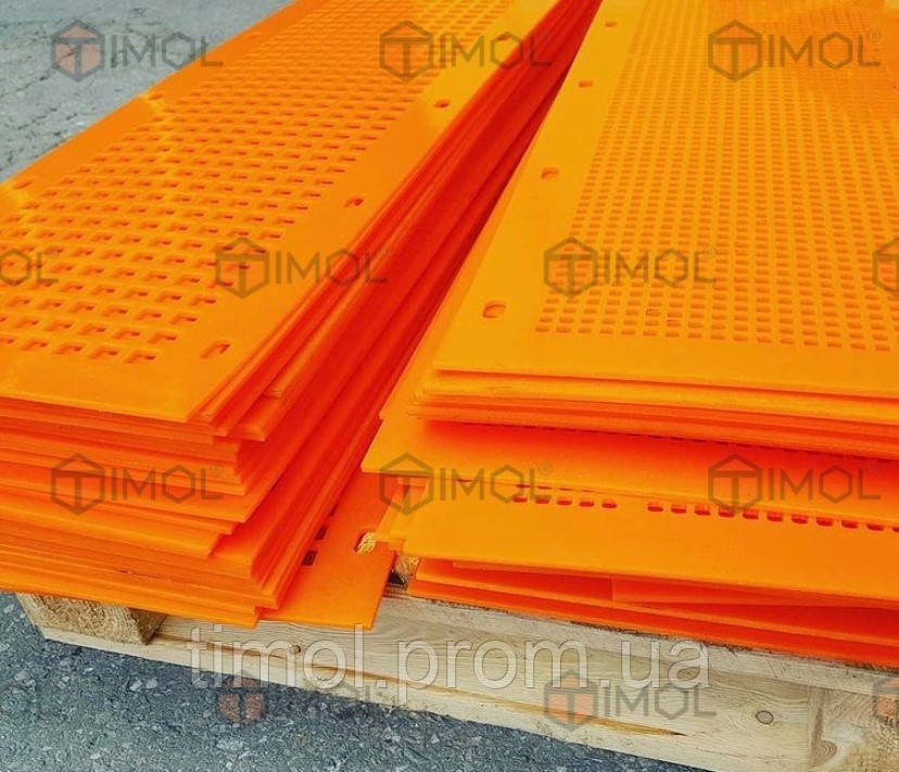 Можна виготовляти сит за кресленнями замовника. Також виготовляємо кулі — очисники діаметром від 10 до 200 мм. Сіта призначені для використання в різних гуркотах для потужного носіння й класифікації сухих мас і зважів у воді (пісок, вапняк, руди, шлаки, вугілля, кокс тощо) Для ефективного застосування в гуркотах: сита зі зносостійкого поліуретану. За допомогою наших сит грохочення й класифікація проходять такі матеріали: вугілля, кокс, пісок і гравій, вапняк, руди, шлаки. Сита виготовлені як модулі з набору сегментів із квадратними або прямокутними отворами. Надійне кріплення в підсвітниках забезпечується застосуванням спеціальних зачепів.