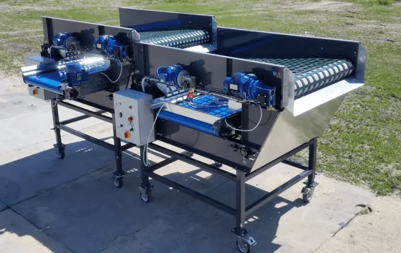 Під сітчастими полотнами встановлні транспортери для завантаження продукту в контейнер, або переміщення його до наступного обладнання в лінії.
