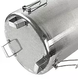 Заторна корзина під фірмовий перегінний куб 60 л. від Магнум СтіллЗа допомогою замків можна встановити сито на горловину куба, що полегшує процес зливу сусла Характеристики:Товщина металу 0,6 мм.Діаметр отворів 1 мм.Матеріал - харчова нержавіюча сталь марки AISI304Ножки висотою ≈ 80 мм. 3 шт. (не заважають встановленню нагрівачаЗамки 3 шт.Найбільший діаметр (по горловині) ≈ 360 мм.Загальна висота з ніжками ≈ 460 мм.Висота без ніжок ≈ 380 мм. Параметри з упаковкою (Д/В/Ш, вага)38/48/38 см., 3,5 кг.