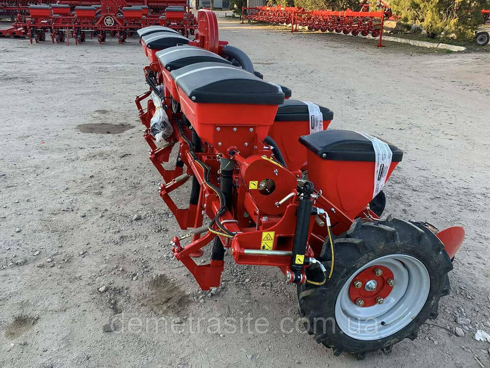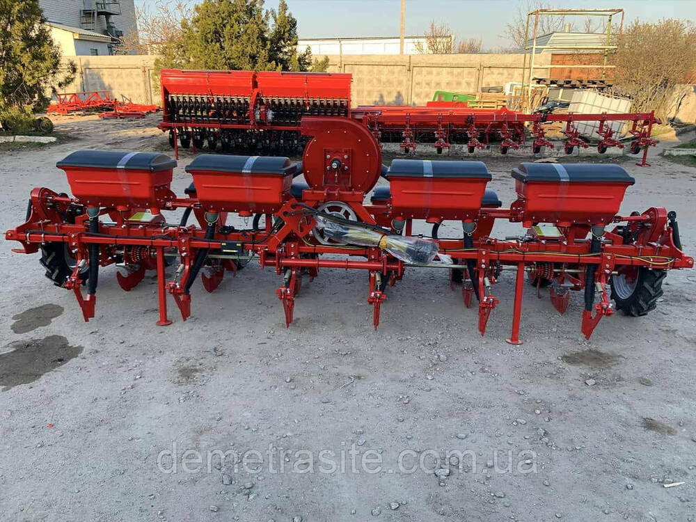 Сівалка просапна СПМ (УПС)-6 Універсальна пневматична сівалка, призначена для точного (пунктирного) висіву каліброваного насіння: кукурудзи, соняшнику, сорго, сої, а також насіння кормових бобів: сої, квасолі та люпину з одночасним, роздільним від насіння, внесенням гранульованих мінеральних добрив і при несенні гранульованих мінеральних добрив.