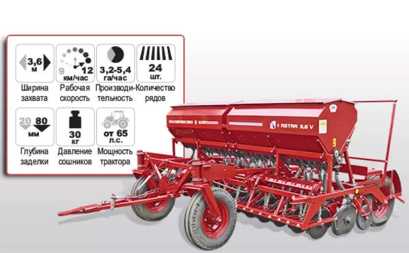 ASTRA 3.6 (PPREMIUM Сівалка дозволяє при нормі висіву пшениці 200 кг/га і висіву мінеральних добрив 100 кг/га засівати до 3 гектарів при одному завантаженні.