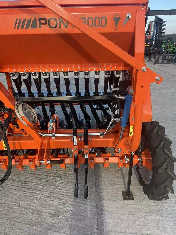 PONY 3000 навісна (Добрива, Маркери, Прикочуючі котки, Пружинний Загортач, варіатор, 21 сошник БОР зі зміщенням, 14,3см м/р, 6,5х16 шини)