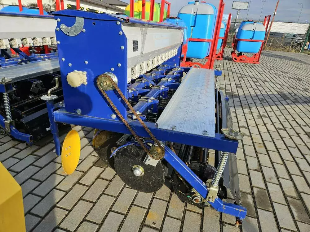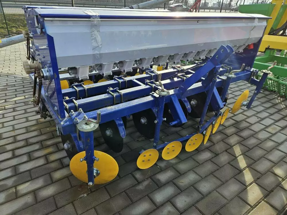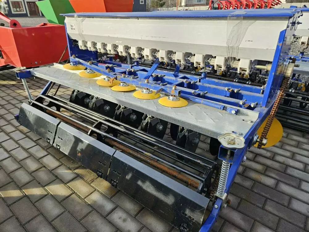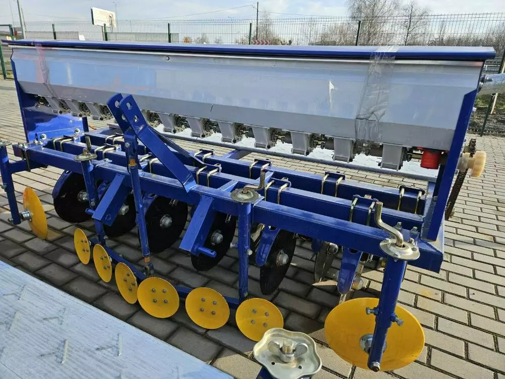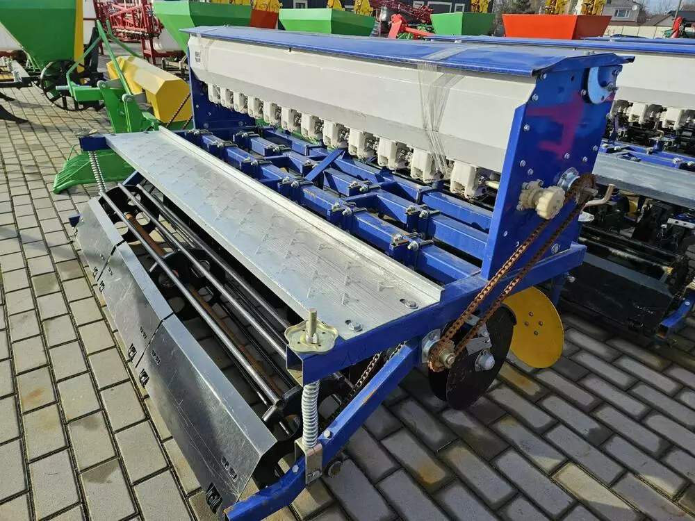 • бункер з нержавіючої сталі товщиною 0,7 мм, висівним апаратом для насіння та внесення добрив;