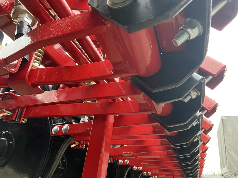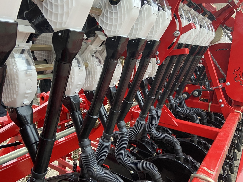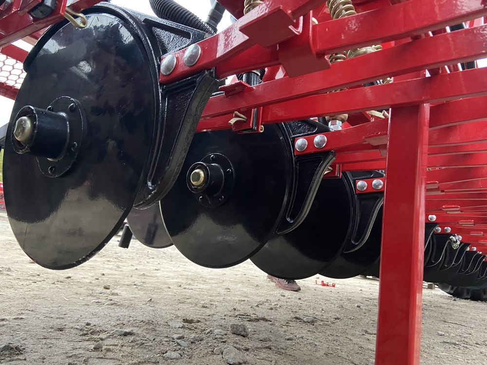 Високотехнологічна, продумана до дрібниць конструкція висівного механізму містить здвоєні дискові сошники, що не допускають скупчення в агрегаті вологого грунту і скошеної рослинності.