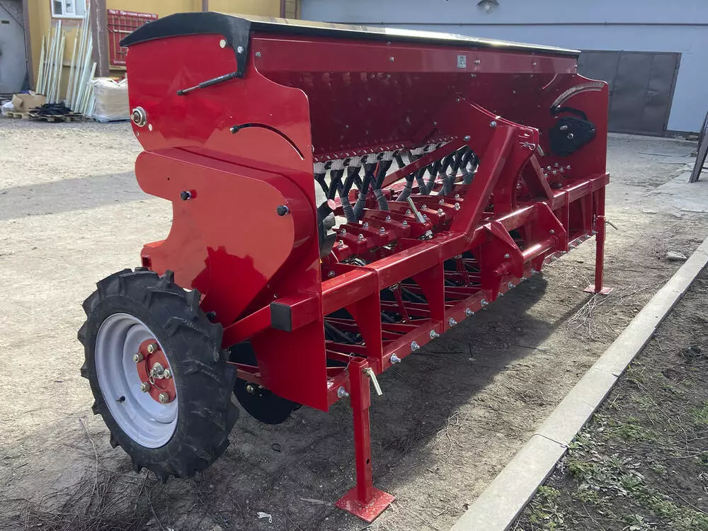 Сівалка для мінітракторів, що відповідає європейським стандартам якості, призначена для посіву зернових та дрібнонасіннєвих культур із одночасним внесенням сухих мінеральних добрив.