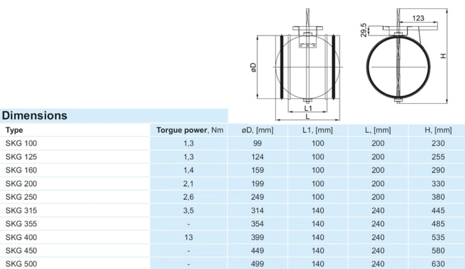 SKG-A 400 – це клапан під привід будь-якого виробника. Встановлюється для запору та регулювання повітряного потоку. Дані клапани можна встановлювати у будь-якому положенні. Запірні лопатки оснащені гумовою прокладкою, що підвищує щільність заслінки у закритому положенні.