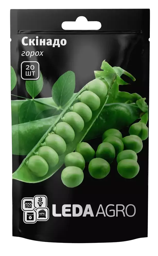 Горох Скінадо — середньопізній високоврожайний овочевий сорт. Володіє тривалим періодом молочної стиглості горошин.