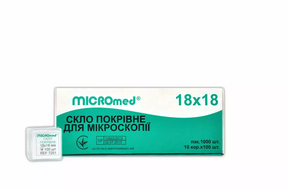 Скло покривне MICROmed 18×18 мм, 100 шт