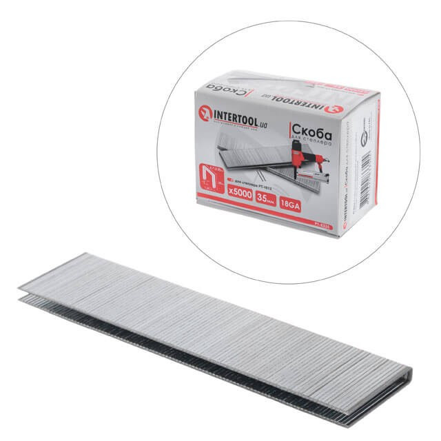 Скоба для степлера РТ-1612, 35 мм (18GA), 5,7 (5,8) * 1,25 * 1,0 мм, 5000 шт/уп. INTERTOOL PT-8335