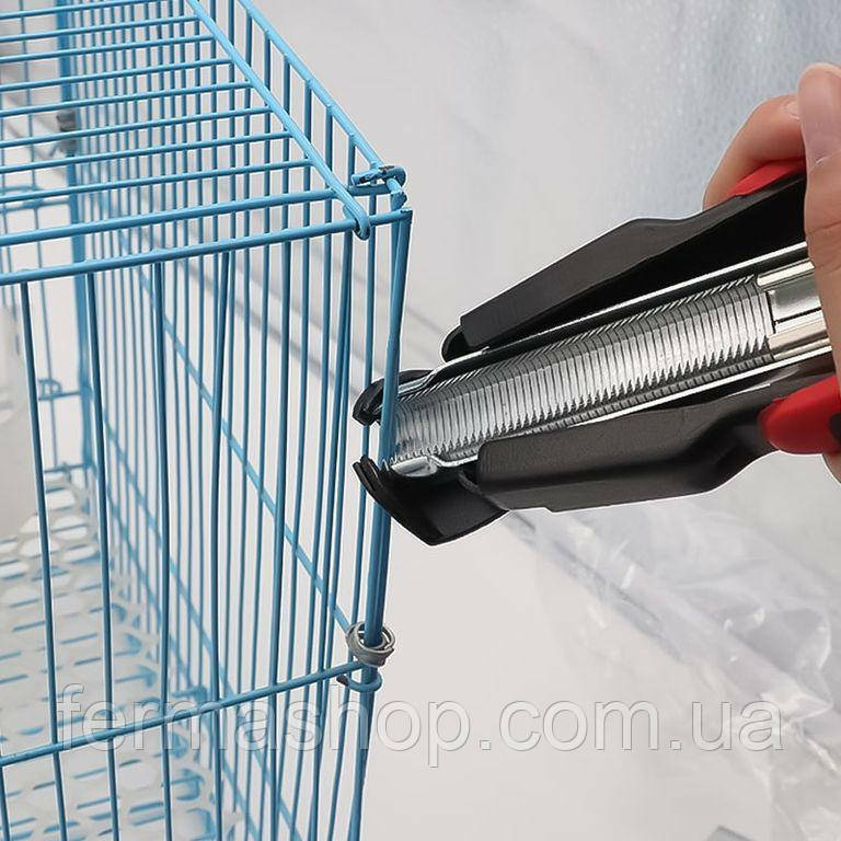 Для соединения между собой 2 частей проволоки(сетки) при монтаже клеток и др..