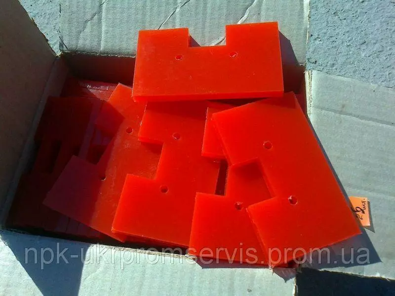 Очень хорошо показали себя полиуретановые скребки и лопатки при работе в бетоносмесителях, на цементных и кирпичных заводах.