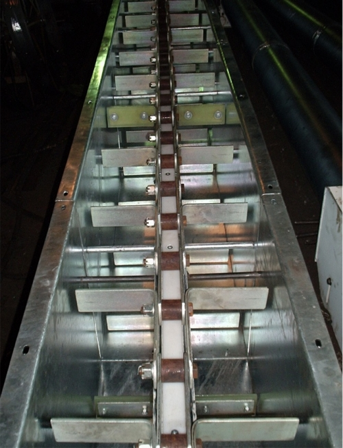 Скребкові транспортери - це машини для безперервного транспорту сипких матеріалів за допомогою скребків, укріплених на одному або двох тягових ланцюгах, що рухаються жолобом або трубою.