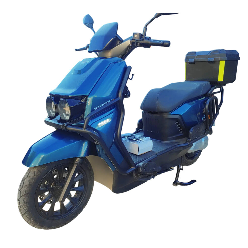 Скутер акумуляторний  FORTE ORION   Синій  нова сучасна модель електроскутера для міста та передмістя. Електроскутер стане чудовим варіантом дістатися на роботу, вирушити на прогулянку чи пікнік. Скутер має стильний сучасний зовнішній вигляд, простий та зручний в експлуатації. Також він оснащений потужним двигуном та ємним акумулятором, що забезпечує хорошу вантажопідйомність та пристойний запас ходу на одній зарядці. Особливості: Сучасний дизайн Цифровий спідометр Сигналізація LED фара та поворотники Легкосплавні диски Захисні металеві дуги