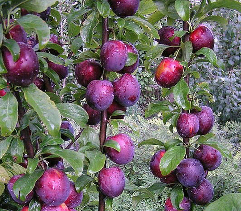 Слива колоновидна Блю Світ- компактна, з красивою кроною. Сорт відрізняється високою і регулярною врожайністю. Плоди дозрівають влітку. Схема посадки колонних саджанців від 1 і до 1.5 м в ряду і від 1.5 і до 3 метрів в міжряддя. Дерево характеризується конусоподібною кроною діаметром 70 -90 см, невисоким зростом до 2.5 м і високою врожайністю. Плоди великі 45 - 60гр, фіолетового забарвлення, м'якоть м'ясиста, щільна, рожевого забарвлення, кисло-солодкого приємного десертного смаку, освіжаюча. Сорт стійкий до захворювань, морозостійкість висока.