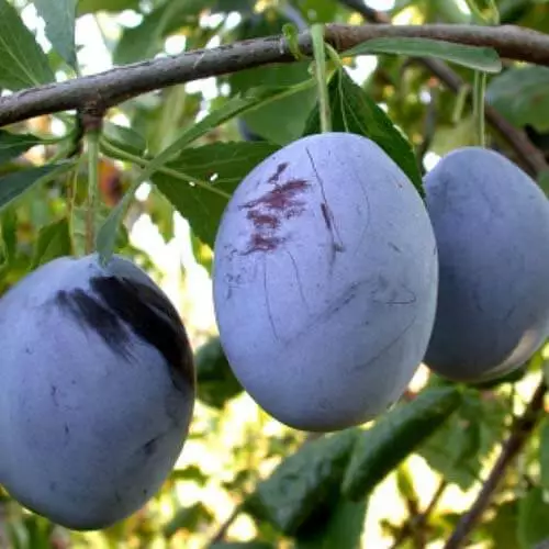 Слива "Ненька" - это округлая, компактная крона, сила роста дерева ниже средней. Плоды крупные, массой 50-70г. Форма плодов бочонковидная. Окраска плодов фиолетово-бордовая, с серыми, чуть заметными подкожными точками, покрыта сильным пруиновым (восковым) налетом.