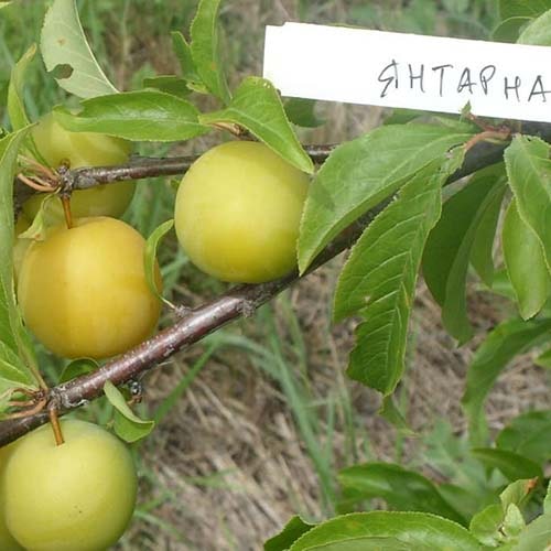 Янтарна мліївська — виведений у Черкаській області сучасний сорт сливи з високими харчовими якостями та всебічним застосуванням. Сливи мають красиве забарвлення — хамелеонове, що переливається в дощ від лимонно-золотистого до ніжно-лілового кольору. Форма — продовгувата. Плоди — більші середнього, м'які на дотик.