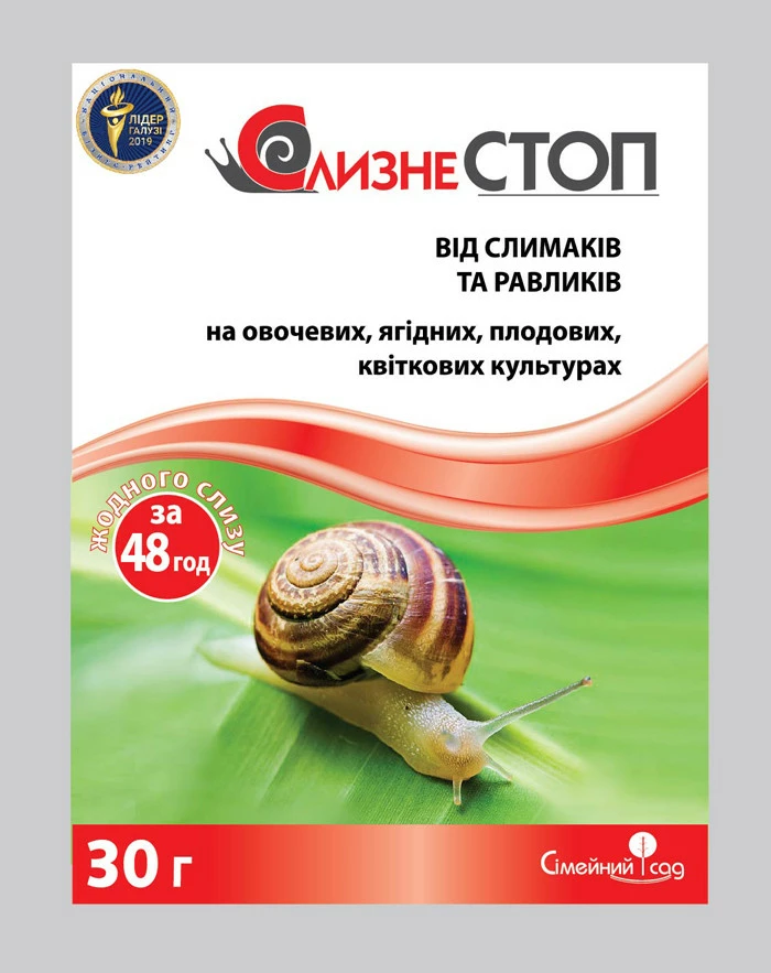 СлизнеСТОП - лимацид для боротьби зі слимаками і равликами в присадибних господарствах. Застосовується на овочевих, ягідних і плодових культурах.
