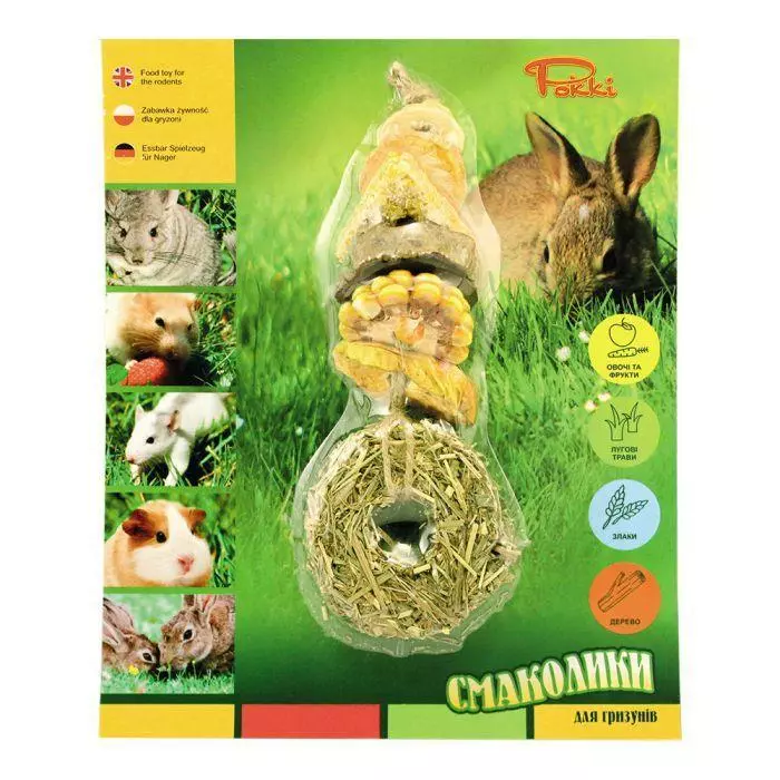 СМАКОЛИК ДЛЯ ГРИЗУНІВ №3 Яскраві, сучасні, зручні, якісні ласощі для гризунів в герметичній упаковці. Смаколики - це поєднання приємного смаку, сучасних технологій і теплоти людських рук. Ви зможете використовувати іграшку для гризуна як до поїдання делікатесів, так і після. Містить зернові крекери різних смаків, сублімовані овочі і фрукти, шматочки шкіри і дерева.