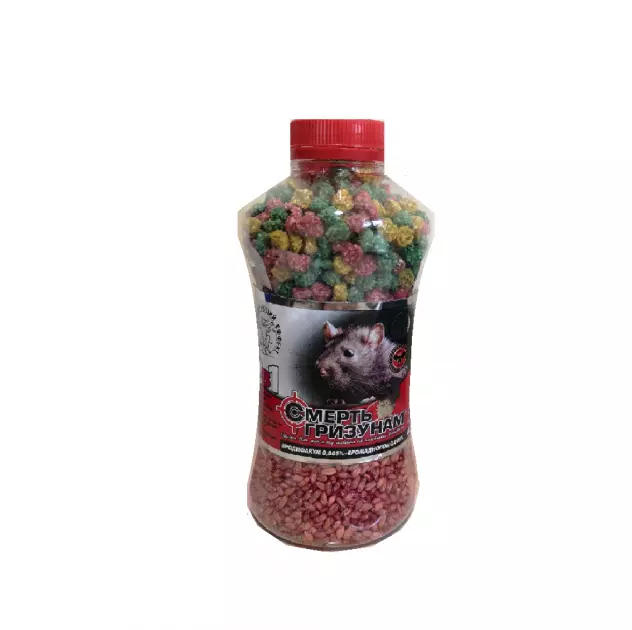 Смерть гризунів 400г червоне зерно + гранула мікс - засіб родентицидний у вигляді гранульованої приманки з привлекателем для знищення щурів і мишоподібних гризунів у житлових та не житлових приміщеннях, а також на сільськогосподарських угіддях і на присадибних ділянках.
