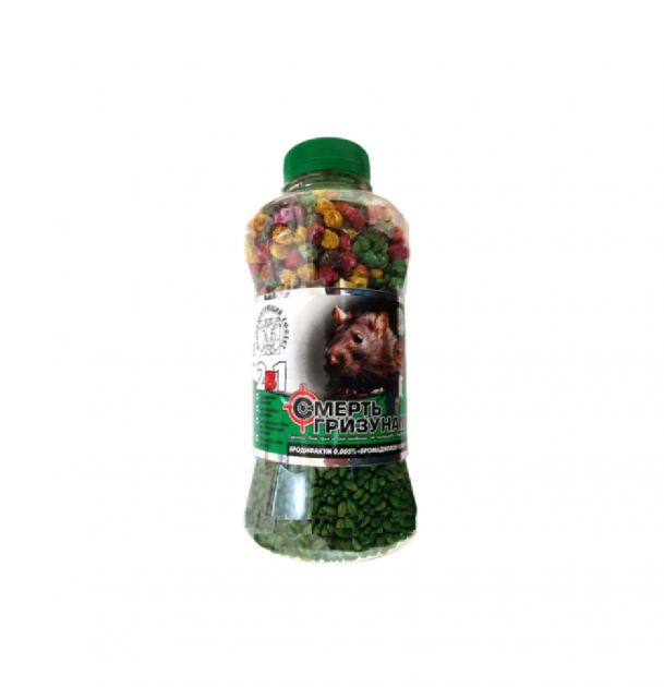 Смерть гризунів 400г зелене зерно + гранула мікс - засіб родентицидний у вигляді гранульованої приманки з привлекателем для знищення щурів і мишоподібних гризунів у житлових та не житлових приміщеннях, а також на сільськогосподарських угіддях і на присадибних ділянках.