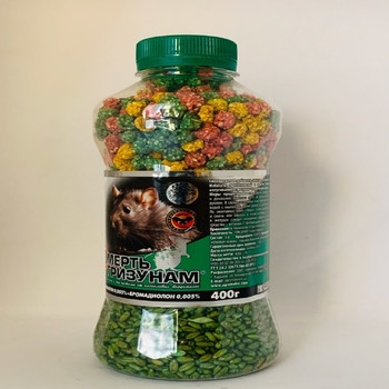 Смерть гризунам 2 в 1 400 г зелене зерно + мікс гранула (Агромаксі) — відрівнювання застосовується для знищення різних видів м'язових гризунів.