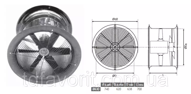 Серия смешивающих вентиляторов 630/M/8-8/50/230/L, предназначенных для монтажа в помещениях с большой кубатурой, делающих возможной вынужденную циркуляцию воздуха и ограничивающих тепловые потери, вызванные стратификацией воздуха в помещении. Вентиляторы имеют лёгкий корпус и изготовлены на базе ненасыщенных полиэфирных смол. Дополнительно корпус имеет кронштейны, облегчающие подвешивание и прикрытие.
