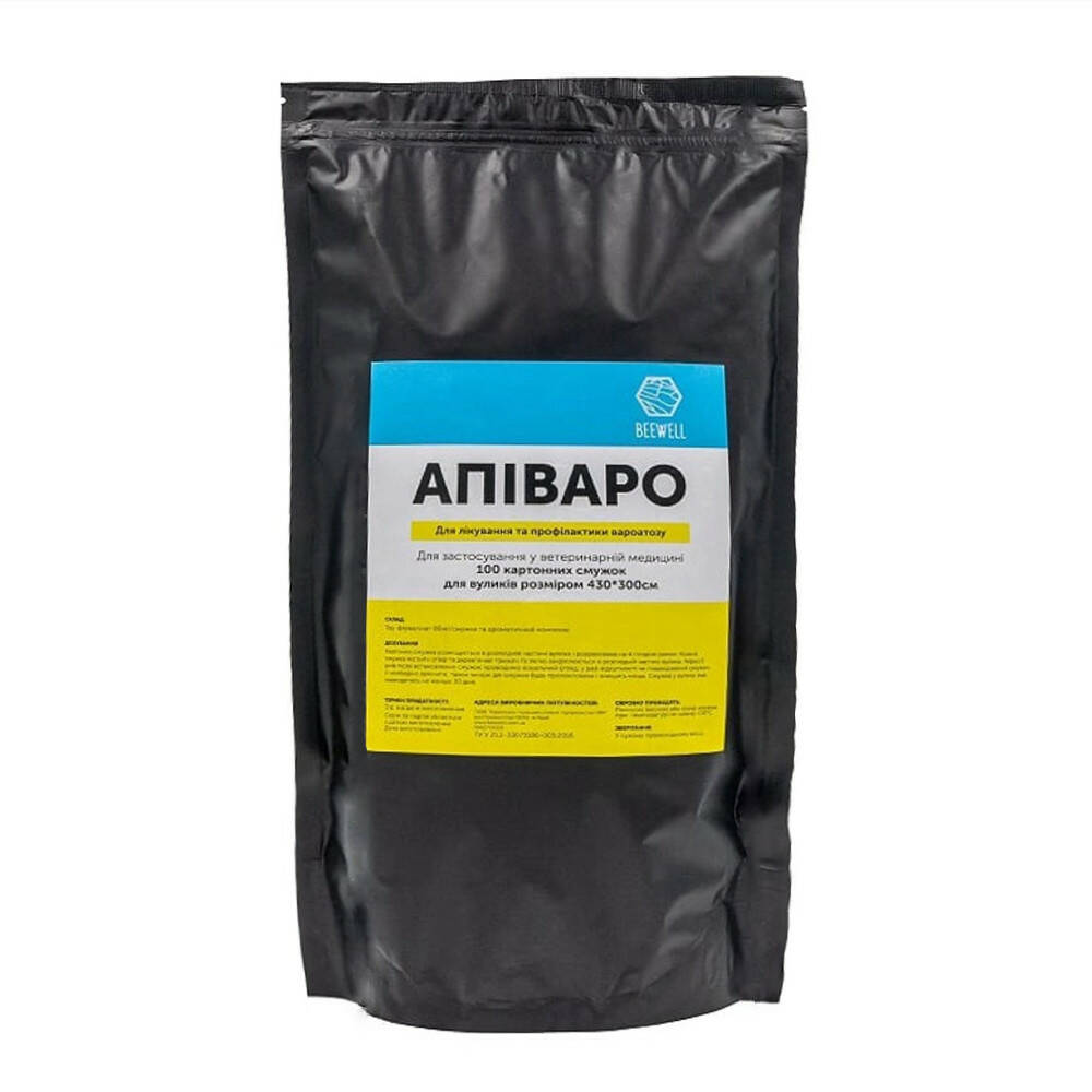 Пластиковий пакет, який містить картонні смужок та дерев’яні тримачі, за допомогою яких смужка буде закріплюватись в розплідній частині гнізда. Інструкція по застосуванню надрукована на упаковці.