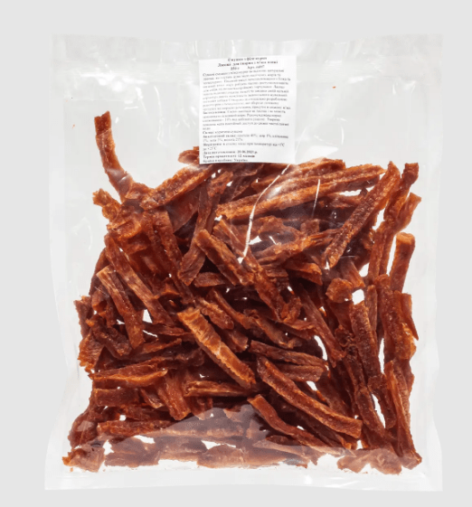 Смачні натуральні ласощі для собак у вигляді смужок з м’яса сушеної курячої грудки, що володіють високим вмістом якісного білка і низьким вмістом жиру. Вони чудово доповнять щоденний раціон Вашої собаки та ідеально підійдуть для застосування в якості заохочення в процесі ігор, дресирування і виховання.